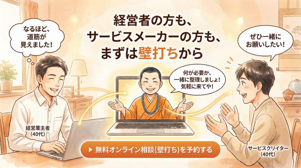 どちらの方も、まずは無料相談(壁打ち)からスタートしましょう。