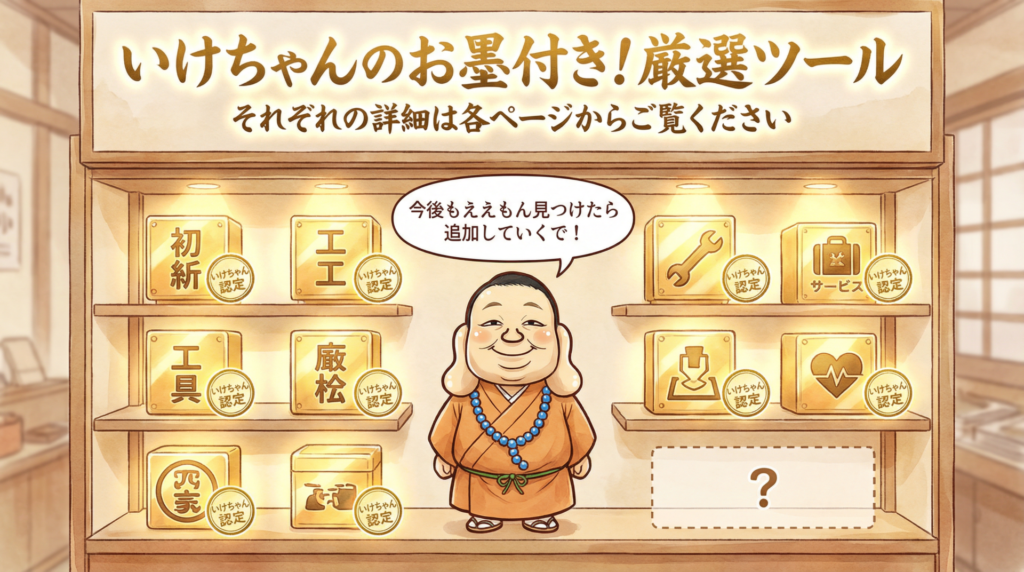 ※ 今後もいけちゃんの目利きで、新しいツールが追加されていきます。