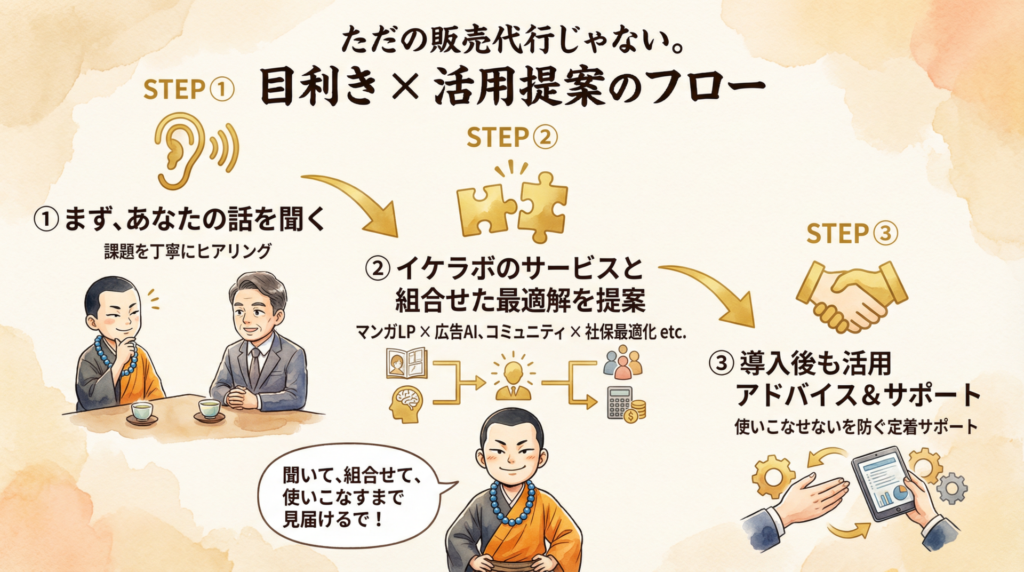 ただサービスを右から左へ紹介するだけの「販売代行」ではありません。